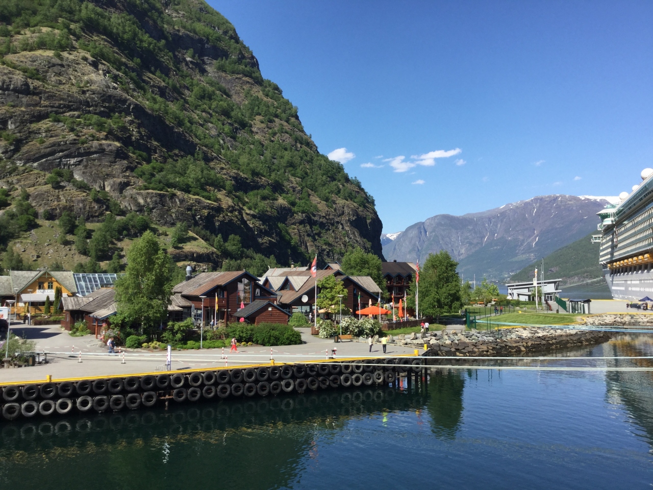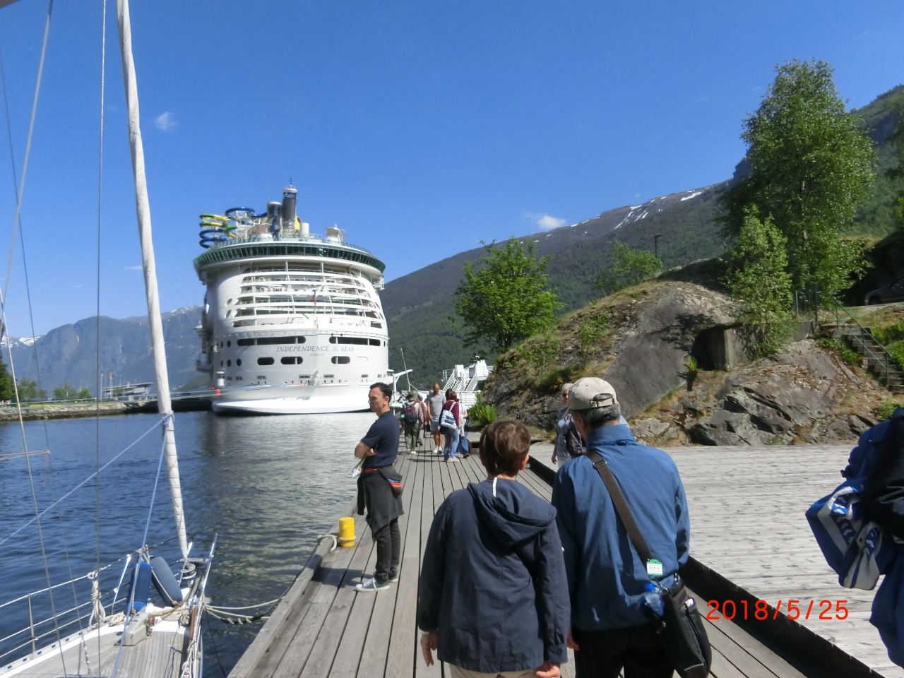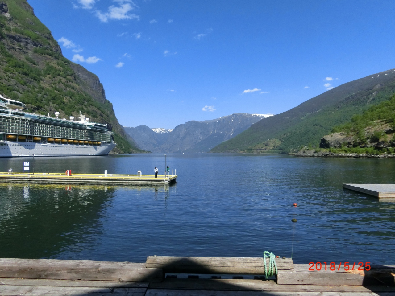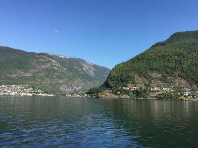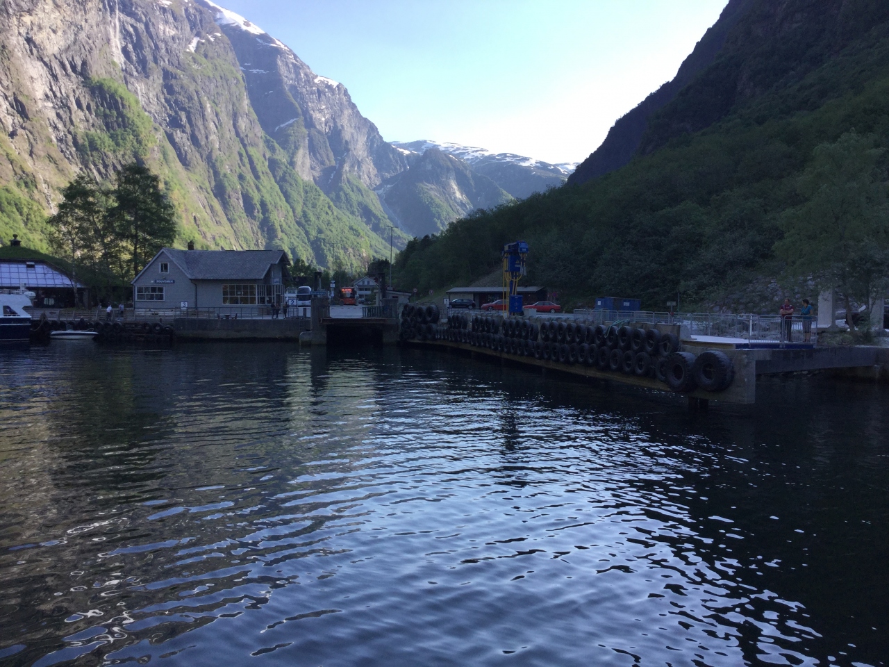 ネーロイフィヨルドの終点、グドヴァンゲン港に近づいてきました。- 旅行時期