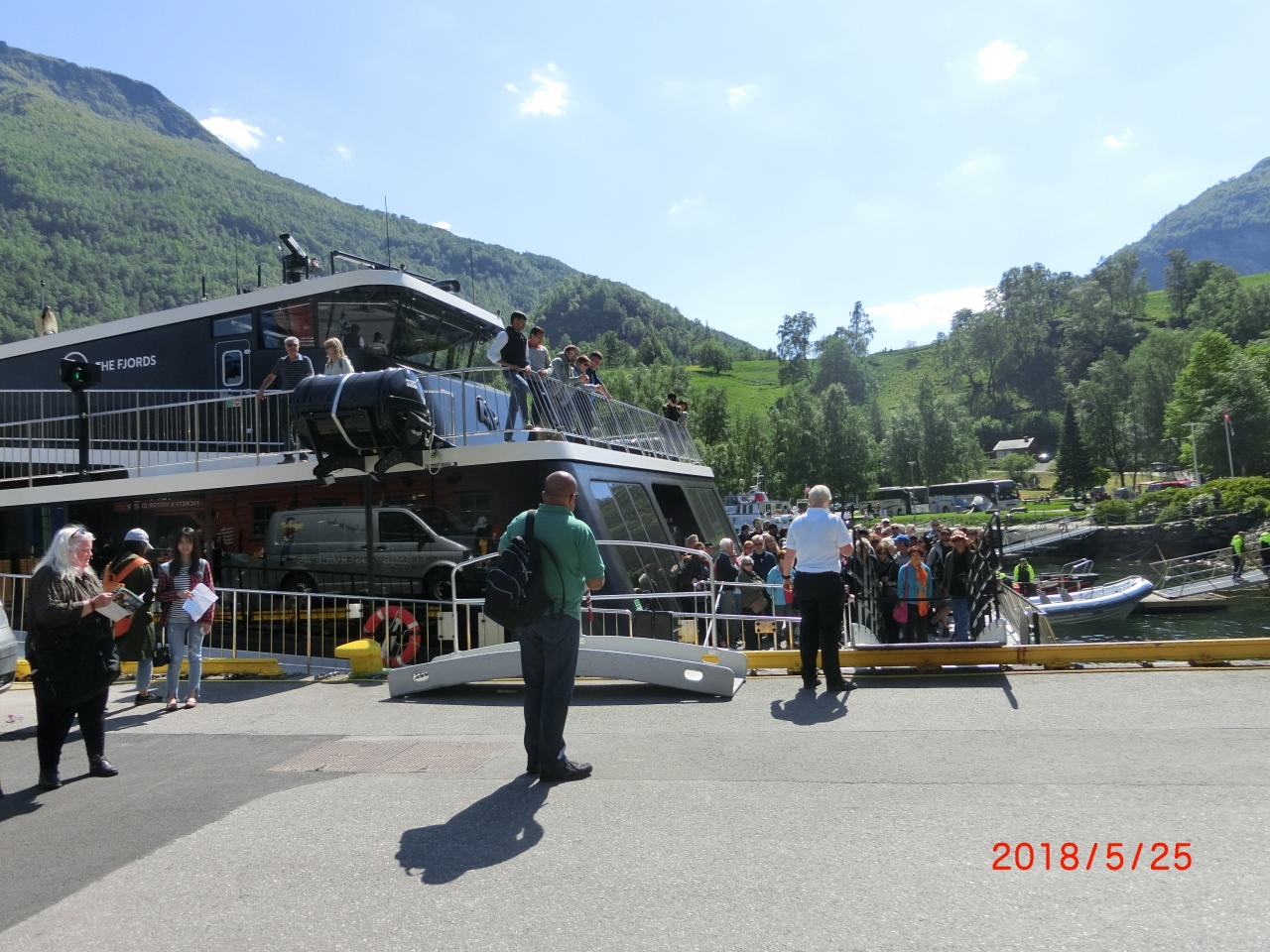 フロム港から2時間の遊覧船でグドヴァンゲン港に到着しました。