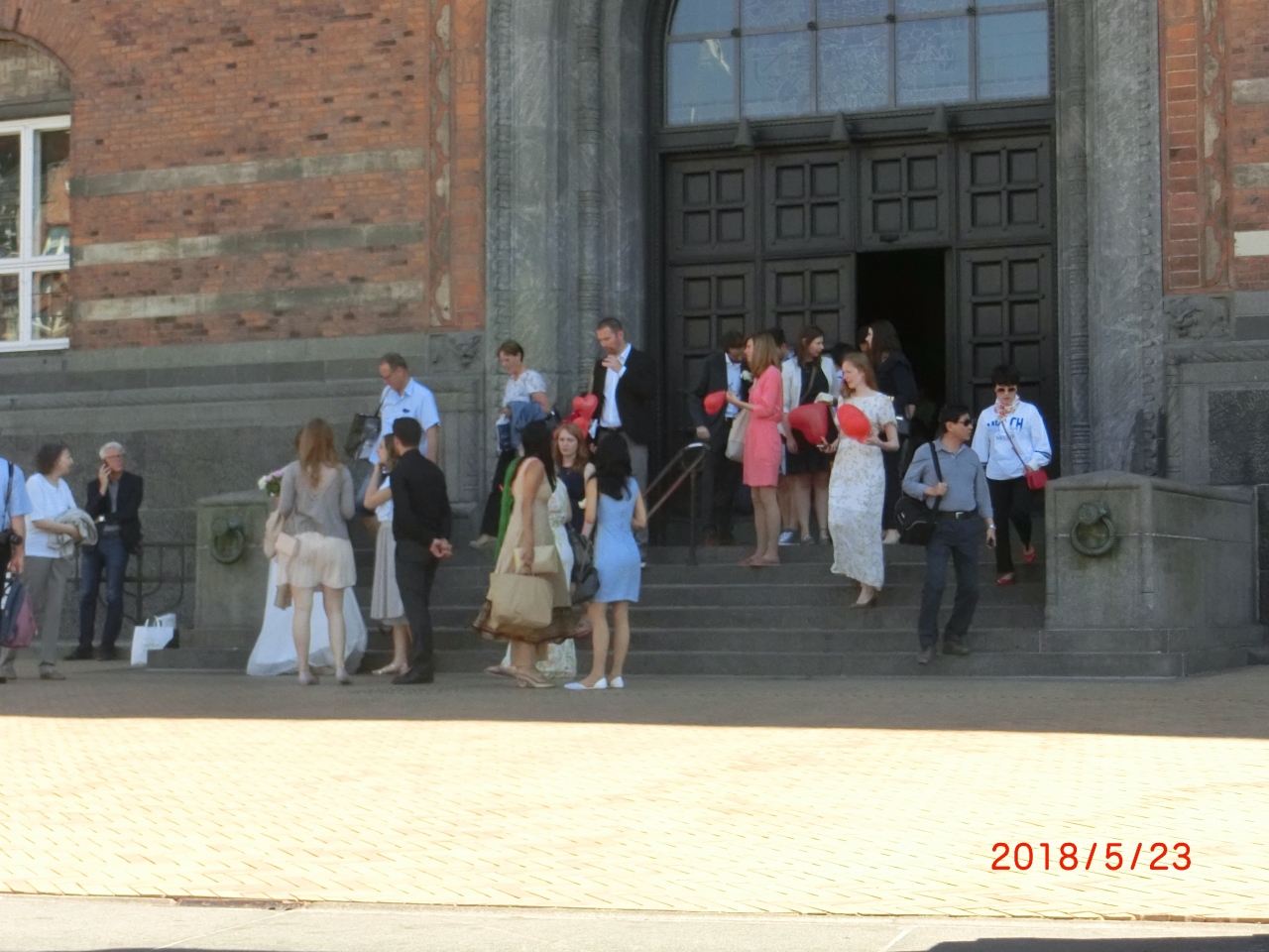 コペンハーゲン市庁舎の前には結婚式でも終えたような人々がいました。