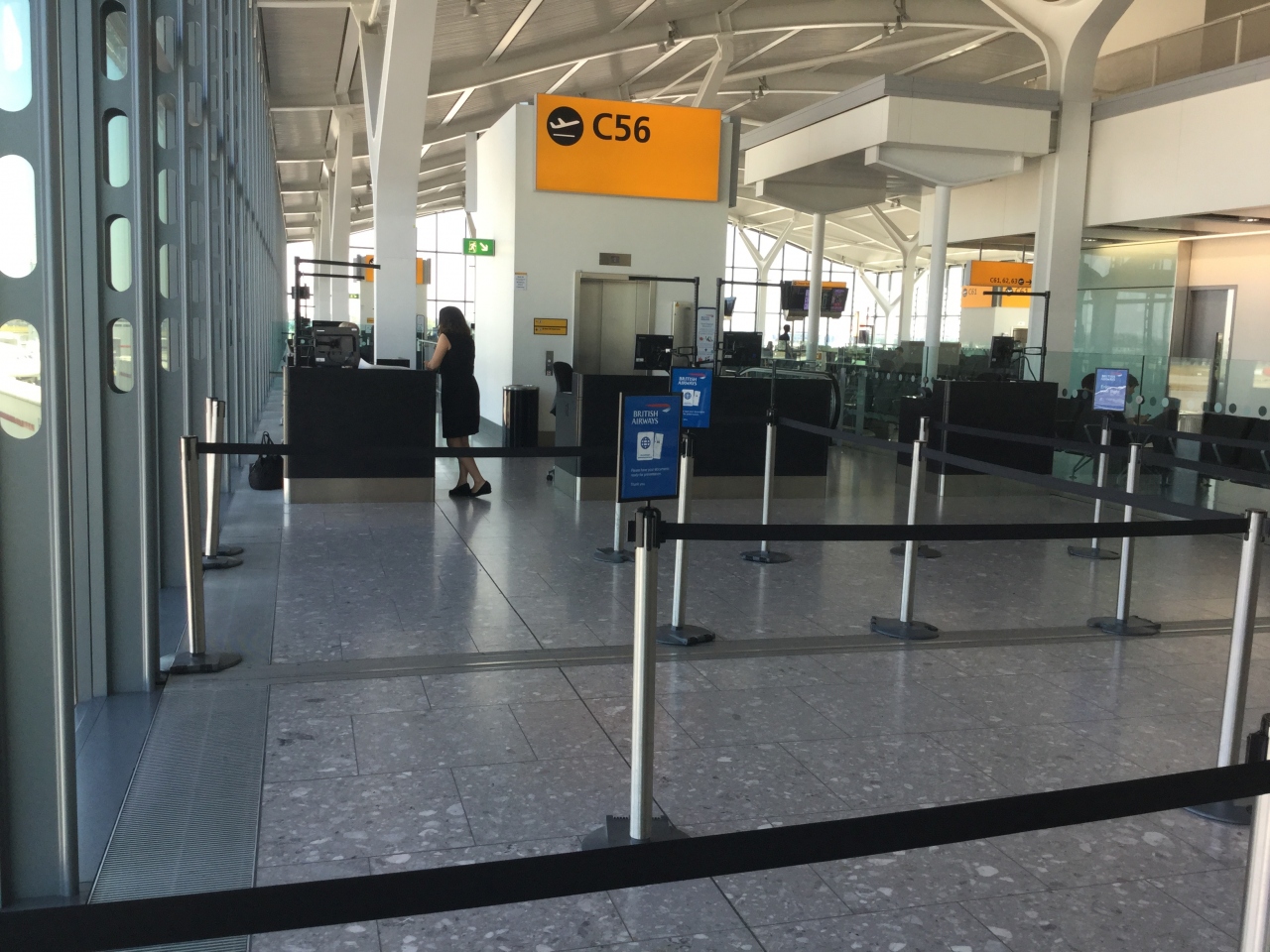 ロンドンヒースロー空港のチェックインは結構並びました。