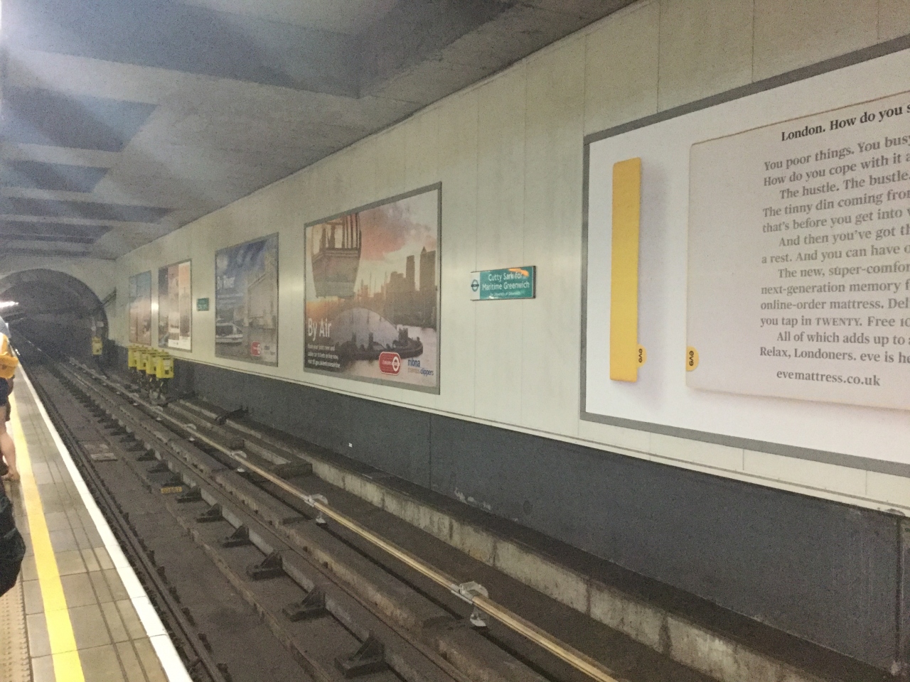 地下鉄ドックランズライトレイルのカッティー サーク駅のホームは殺風景です。- 旅行時期