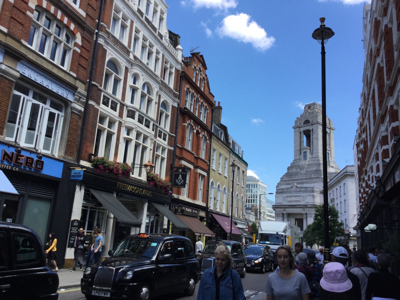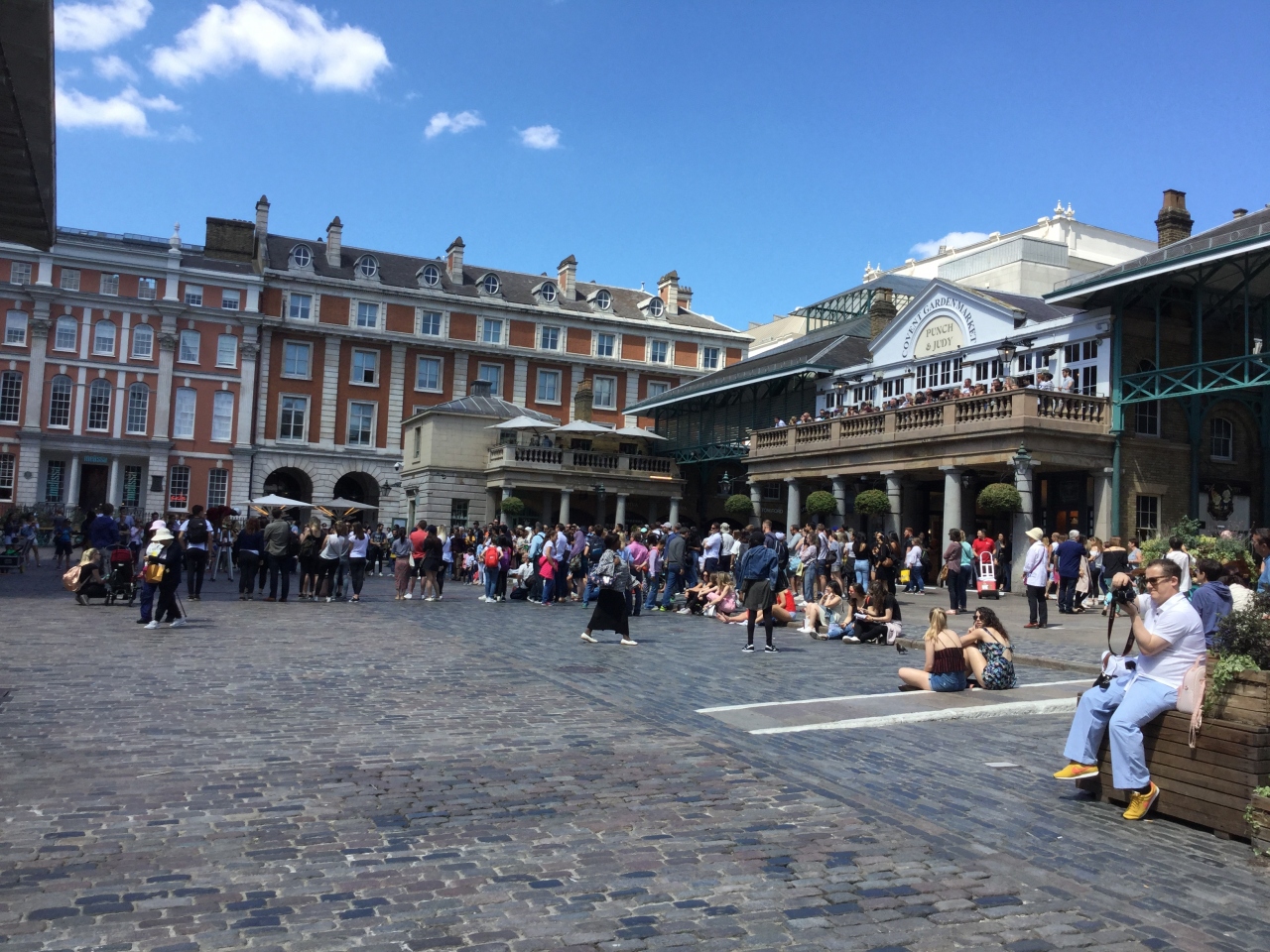 コベントガーデンのマーケットに行くときに通った道で路上パフォーマンスもあり賑やかな通りでした