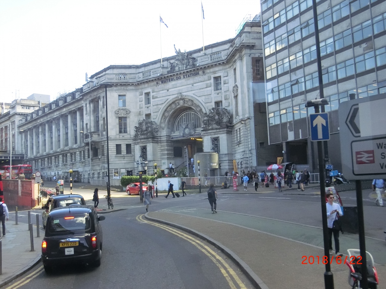 歩道のある大きな橋でテムズ川を渡るとウォータールー駅に行きます