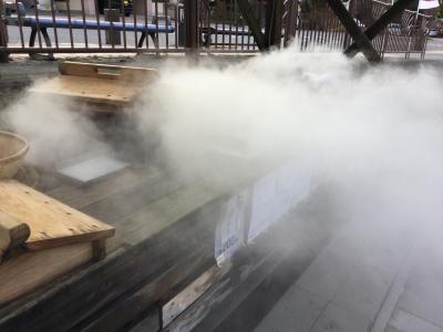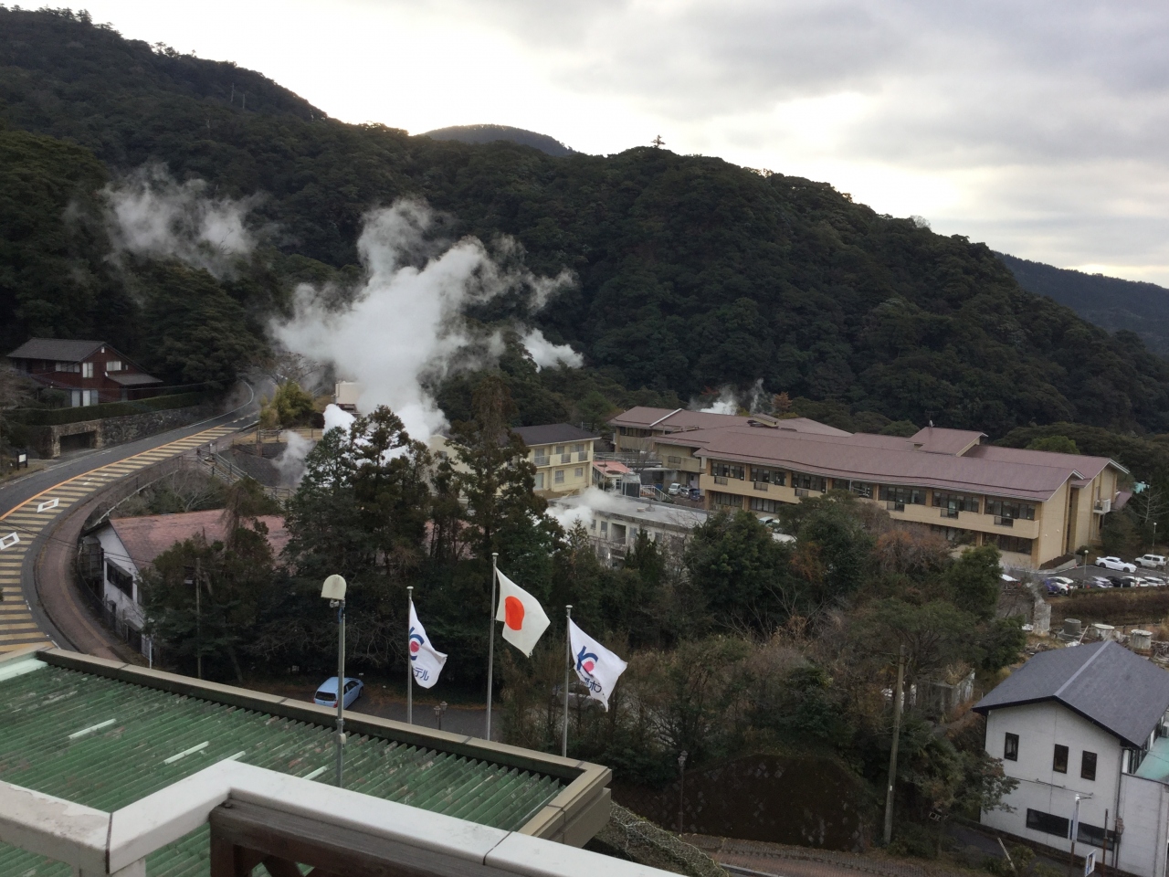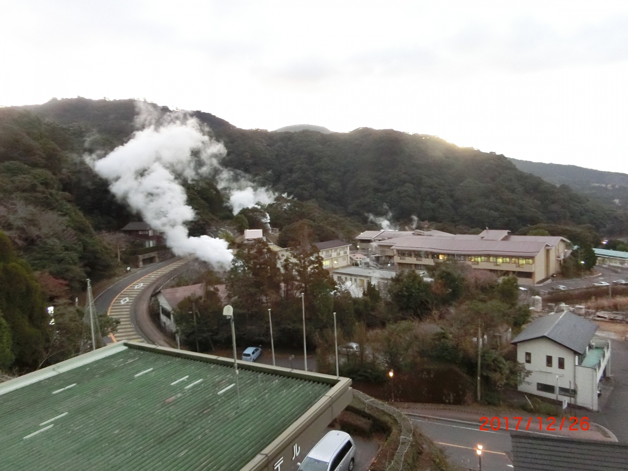 部屋から湯けむりが濛々と上がっているのが見えます。