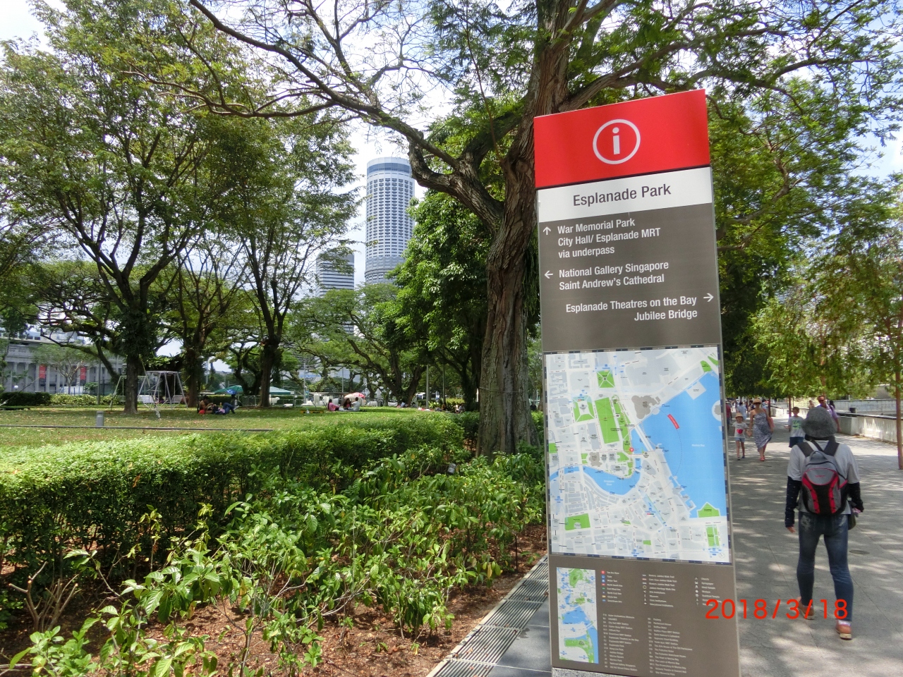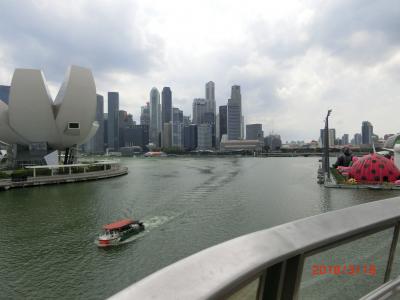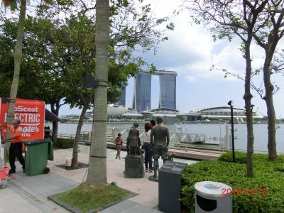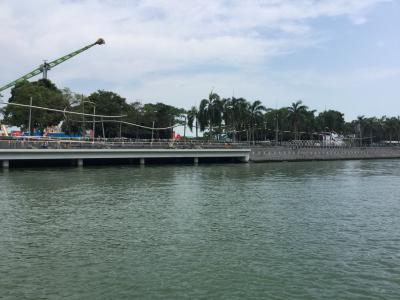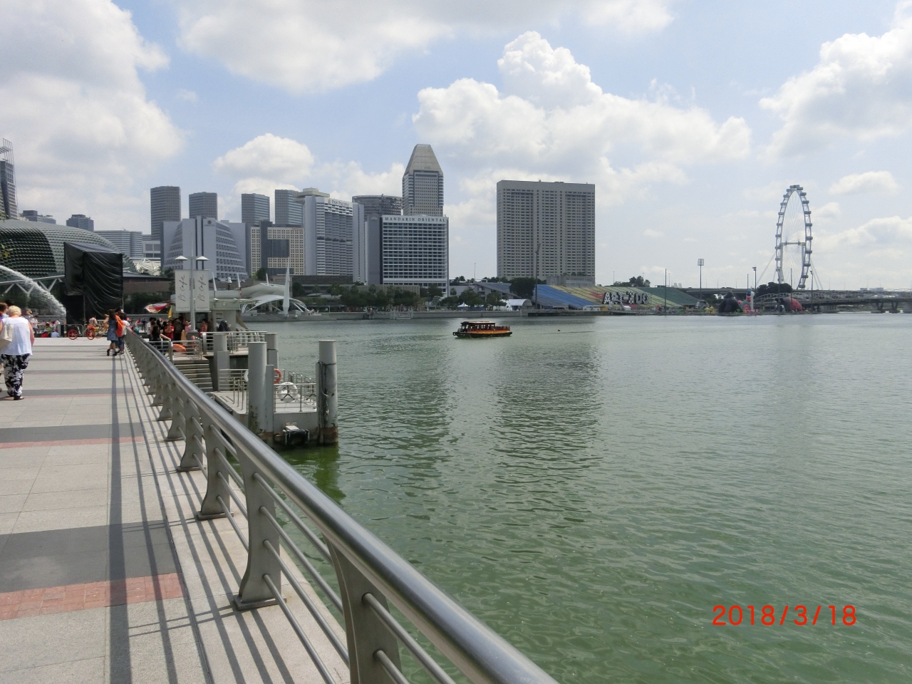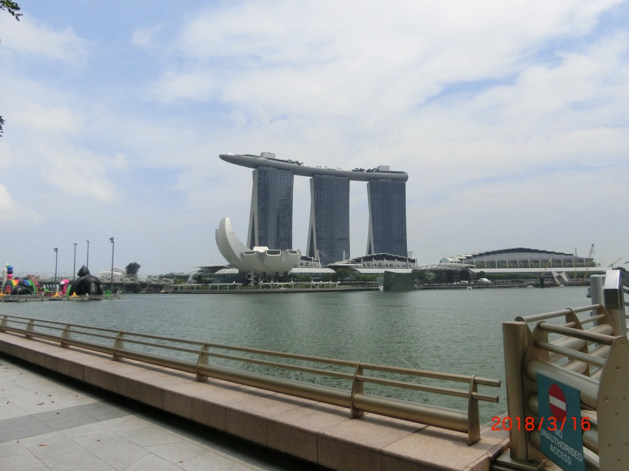 斜め右にマリーナベイサンズを見ながらマリーナプロムナードを歩いて行きました。