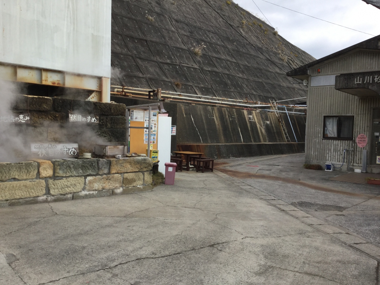 山川砂むし温泉の入浴券売り場の前に野菜を湯がしていました。- 旅行時期