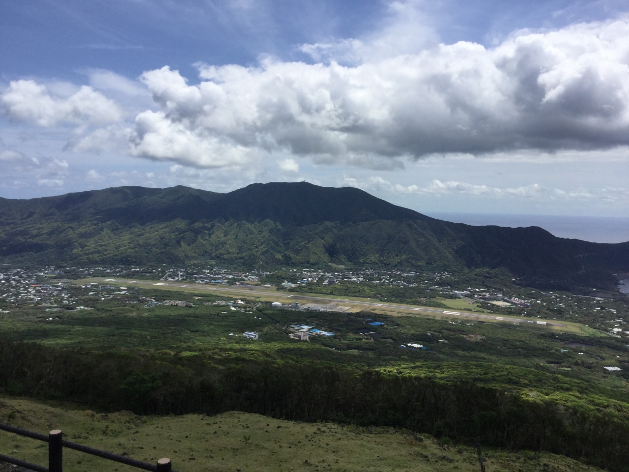 八丈島空港の屋上のデッキに出て着陸を見ました。