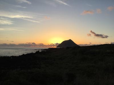 結局夕日は雲に隠れて海に沈むところは見えませんでした。