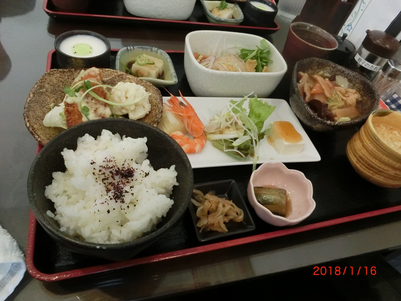 付属の料理: みそどうふ、茶碗蒸し、グラタンなどもありおなか一杯になりました。- 旅行時期