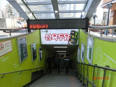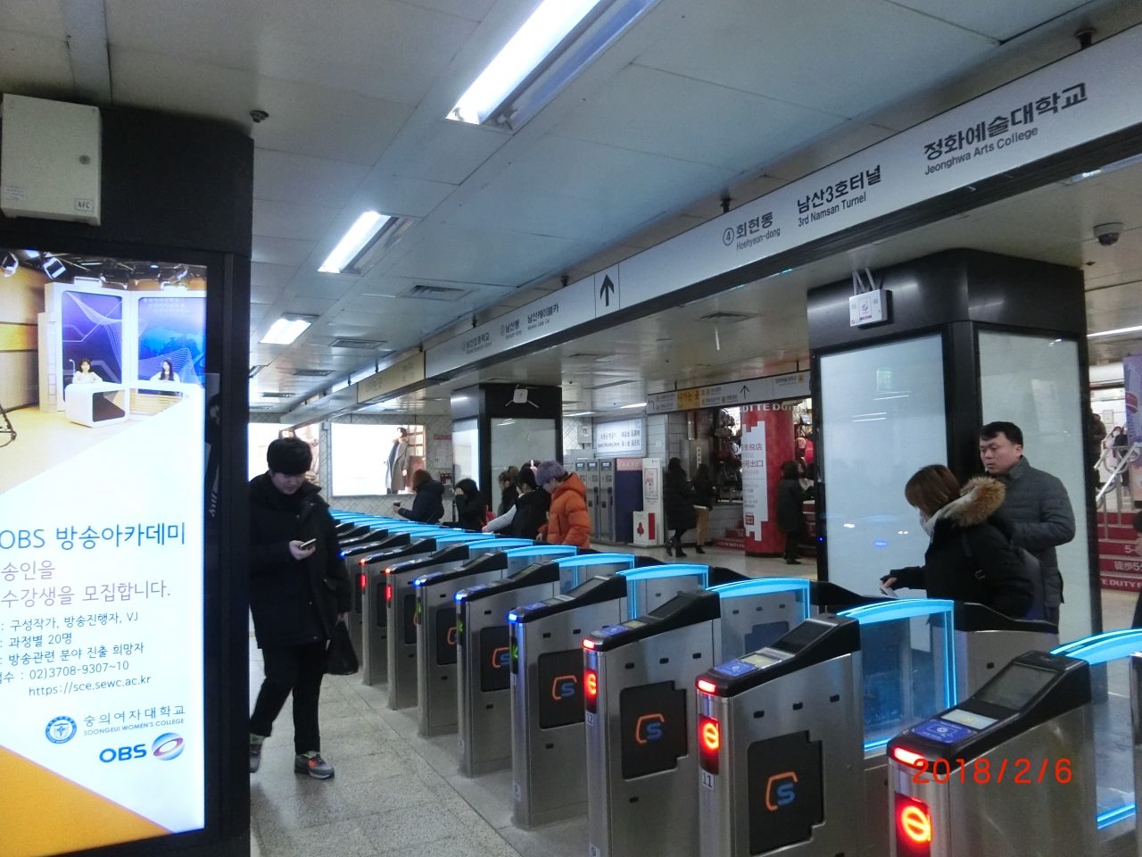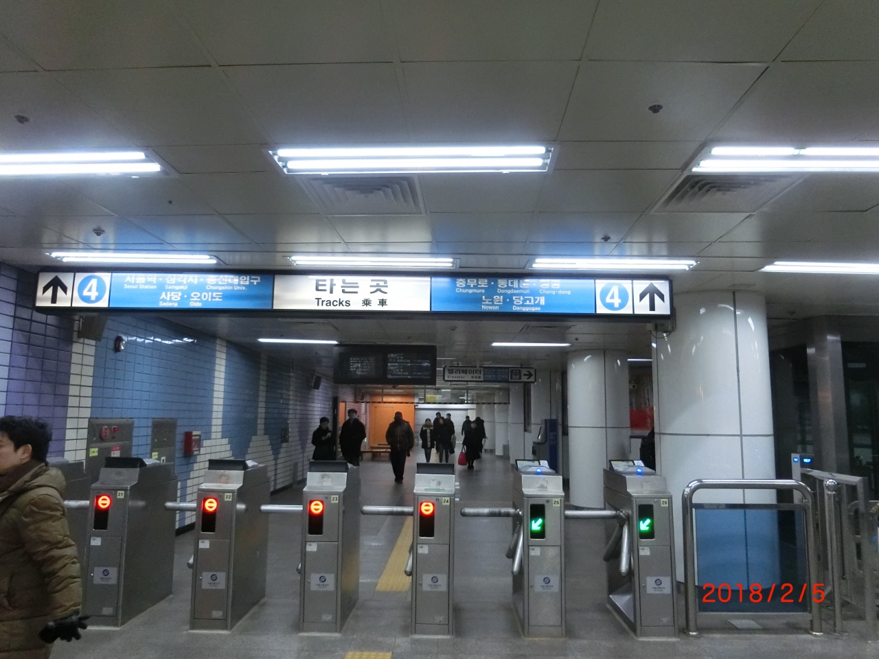 地下鉄5号線で乙支路4街駅 から金浦空港駅まで40分かけて到着。