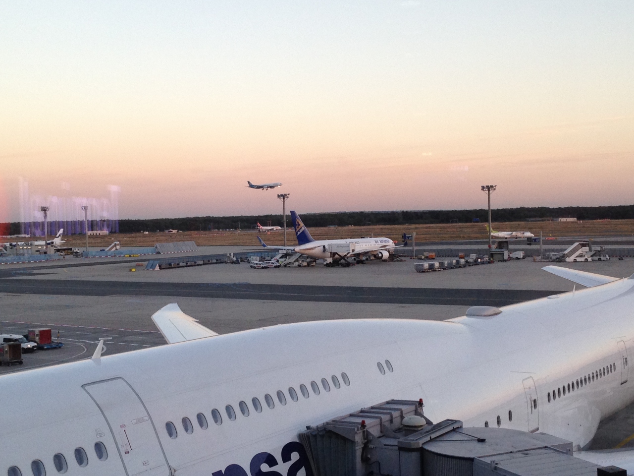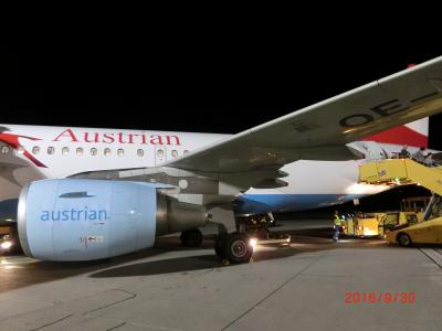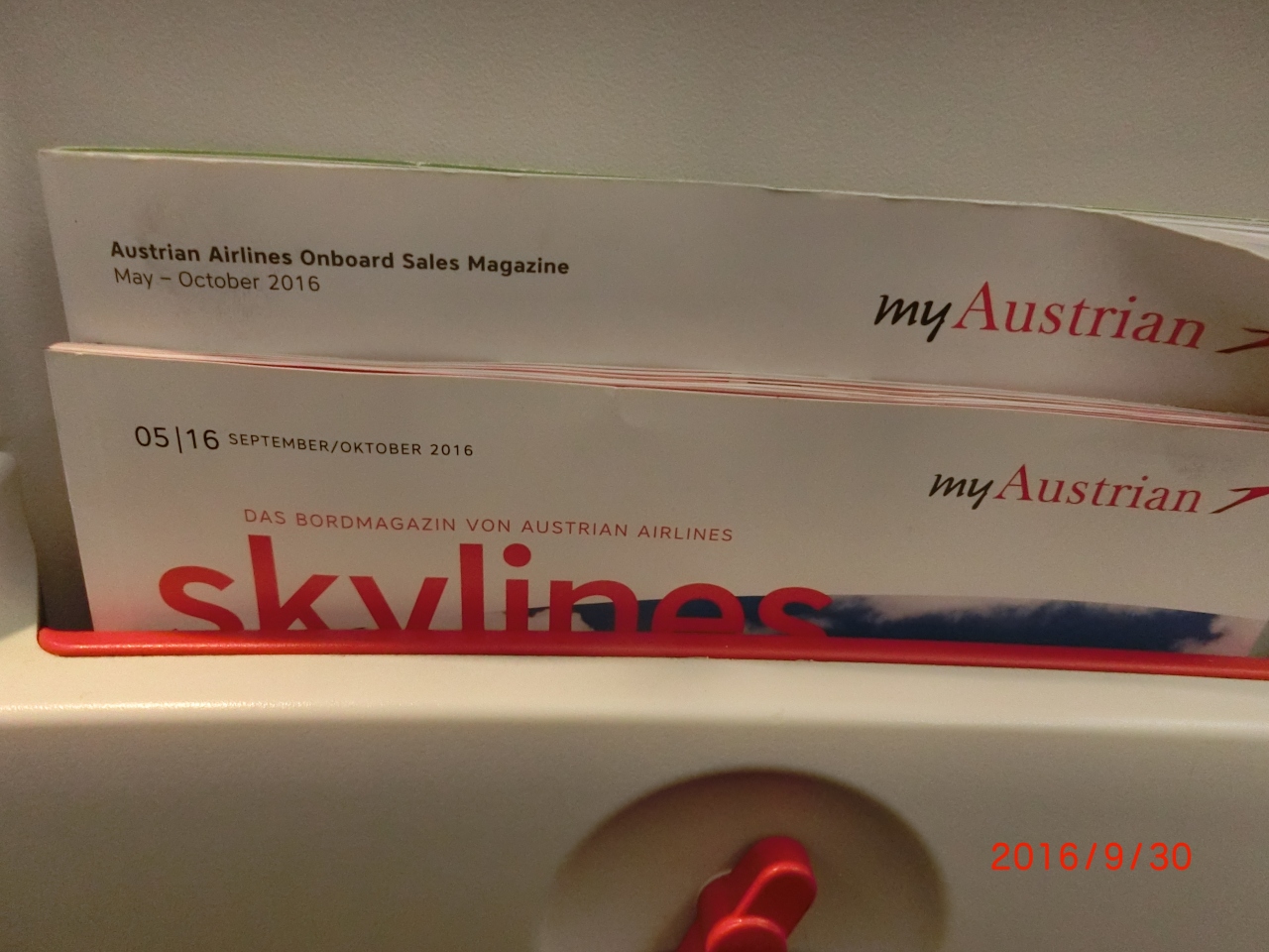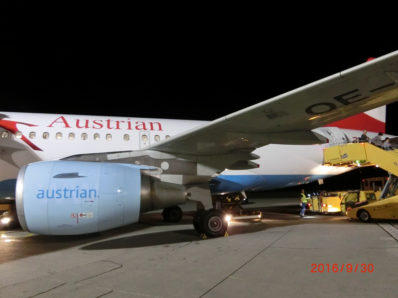 フランクフルト国際空港から乗ったオーストリア航空機で