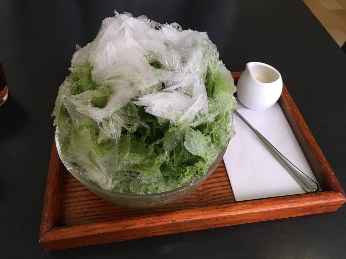 カフェタイムに利用しました。抹茶を使ったデザートだけでなく、ランチタイムには丼物や麺類も豊富なようです。わらび餅と抹茶ミルクを注文しました。利用客はほとんど女性です。男性一人だと入り辛いかもしれません。