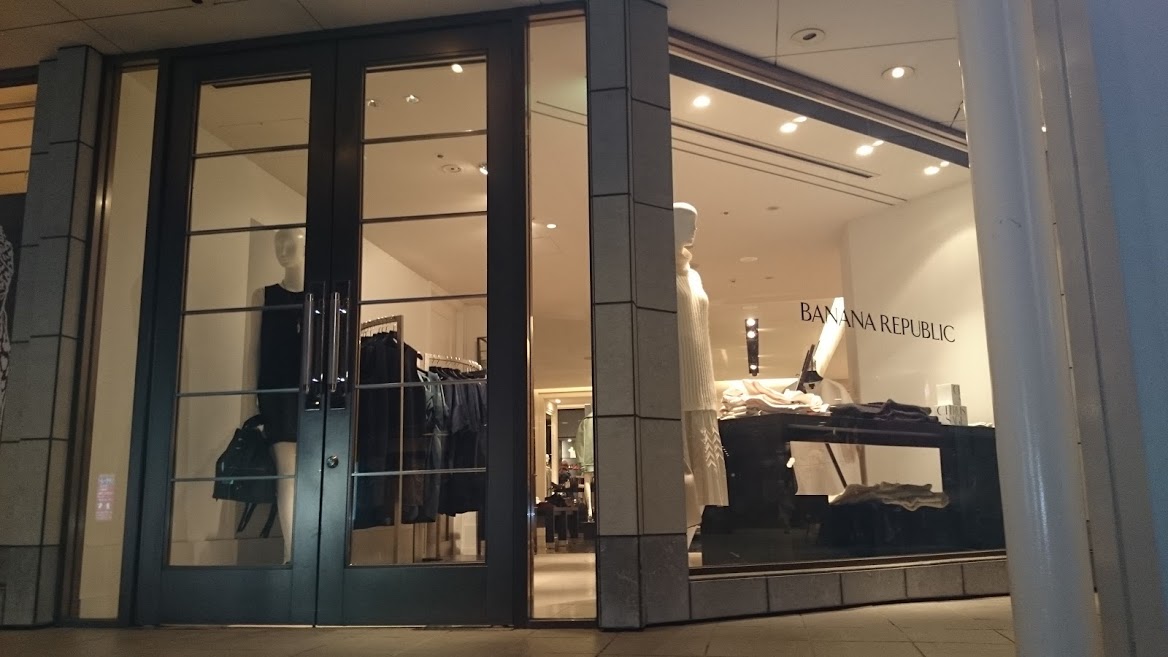 六本木ヒルズを出たすぐのところ、六本木通り沿いにあるバナナリパブリックです。流行のものというよりは、オフィスで使えそうなシンプルな服が多いです。