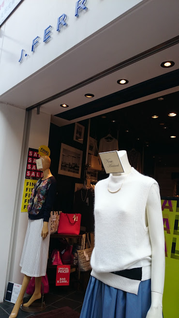 自由が丘にはJFERRYは2店舗あります。こちらは自由が丘駅の南口側にあるショップです。もう一店舗に比べて狭くて商品は少ないですが、服だけでなくバッグやアクセサリー類もかわいいものが多くついつい立ち寄ってしまいます。