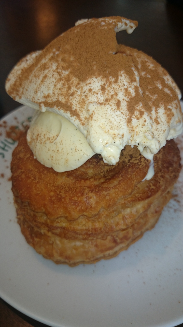 以前はランチでスペアリブを食べたのですが、今回はカフェで利用しました。アップルパイはその場で焼くため20分くらいかかるとあらかじめ案内がありました。今回はシナモンにしたのですが、ストロベリーやブルーベリーもあります。暖かい生地にアイスが溶けて、美味しかったです。