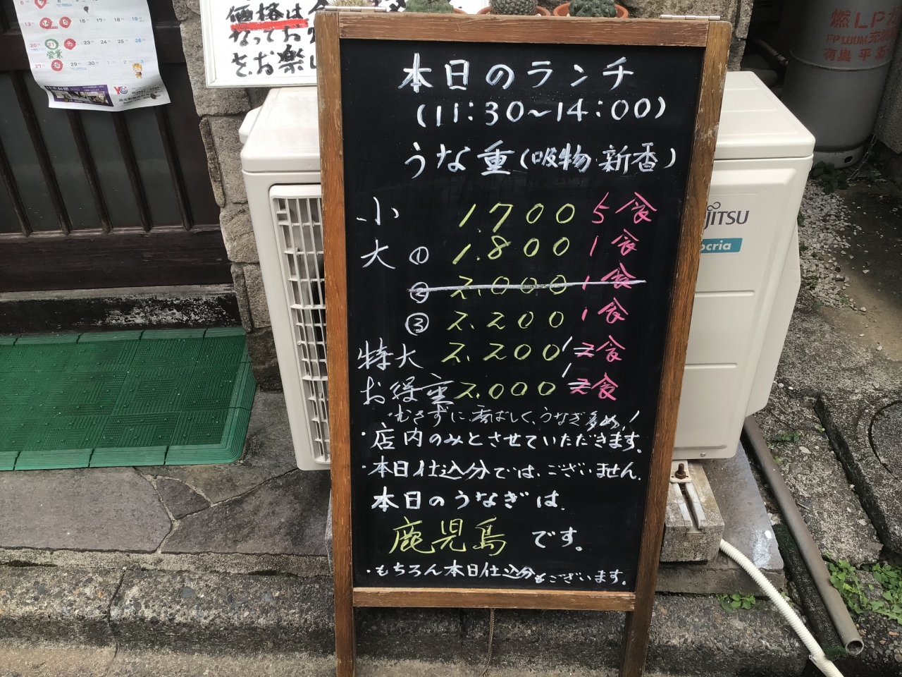 大のうな重ランチは1800円、2000円、2200円、各1食、特大2200円2食が、大2000円と特大2200円が1食出ており、残るは大2200円と特大2200円。