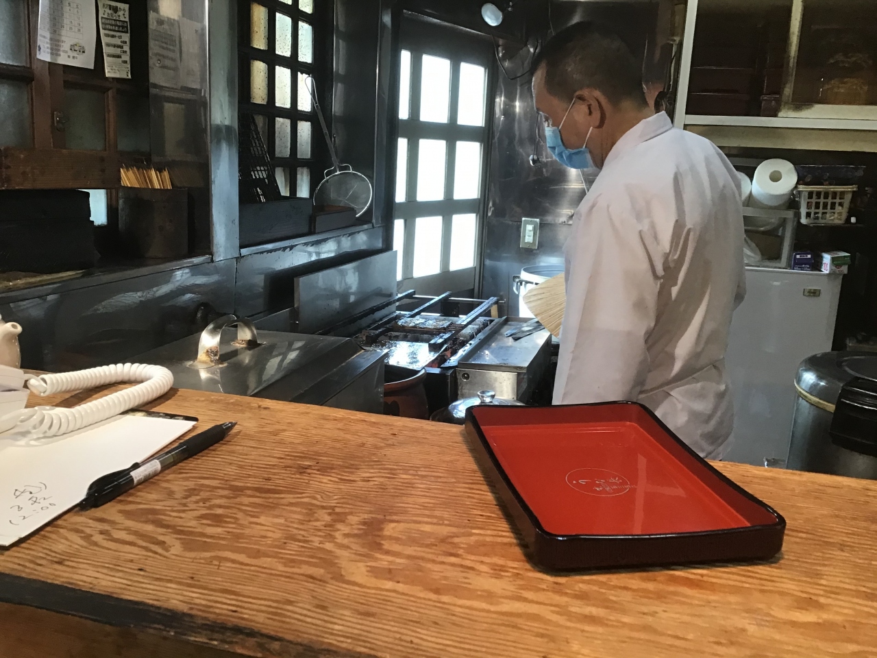 カウンター席に先客が1人、2000円の大うな重を食べていた。