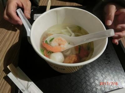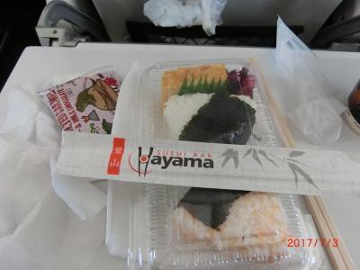 行きはハヤマの弁当をもらい、帰りは空港の店でうどんを食べた。