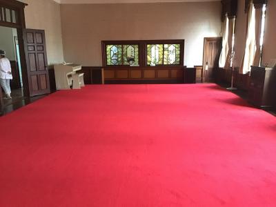 1階応接室。天井の折り上げ小組格天井と絹緑の壁紙、床にはペルシア絨毯。