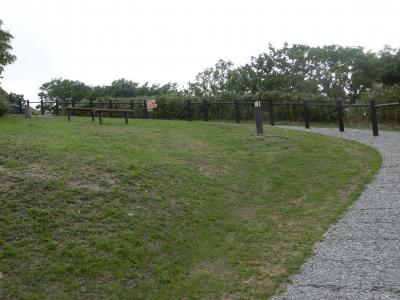 頂上には展望台、少し下の原っぱには会津藩士の墓がありました。