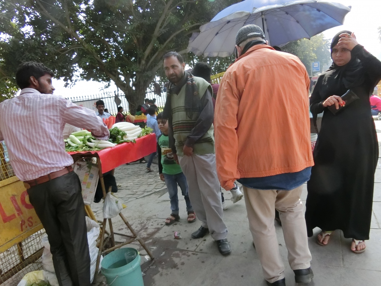 ホテルから赤い砦を見るために観光バスを止めた広い通りです。