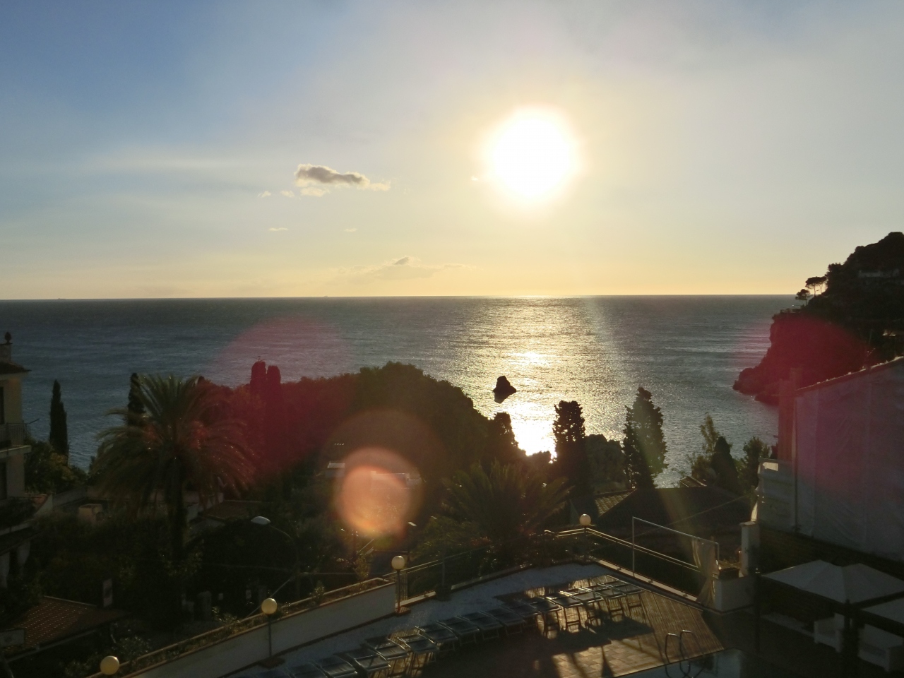 ホテルの2階の屋上からの眺め、前のイオニア海やサンライズ、夜景がいいです。