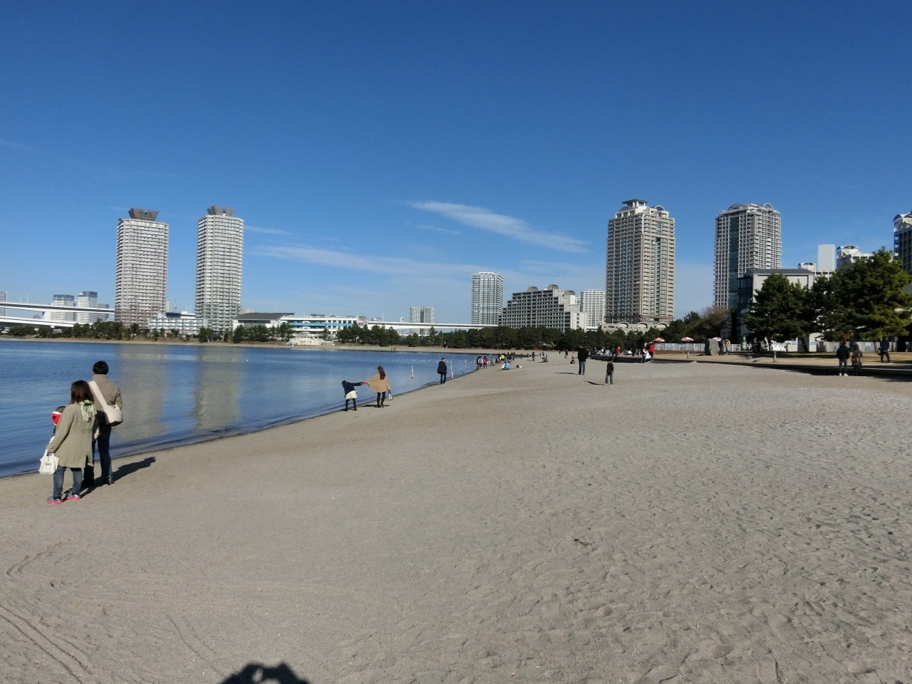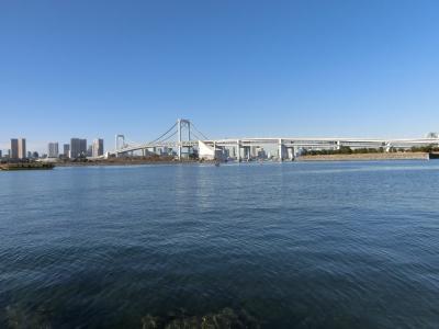 息子達はショッピングで、我々2人は東京湾沿いを歩いて散歩です。