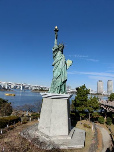 自由の女神像、歩道、展望デッキ、砂浜など東京湾沿いに