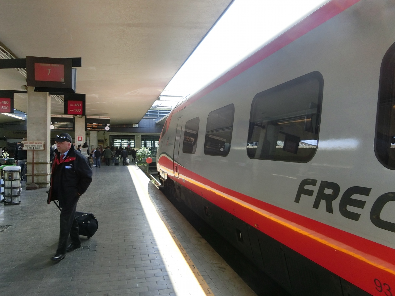 日本の旅行代理店でベネチア、フィレンツェ、ローマツアーの移動にユーロスターが付いており、この駅にはベネチアから着いて、ローマに行くのに乗りました。
