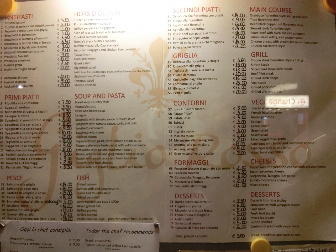 ワインが高い。グラスで8ユーロ。高級ワインですね。