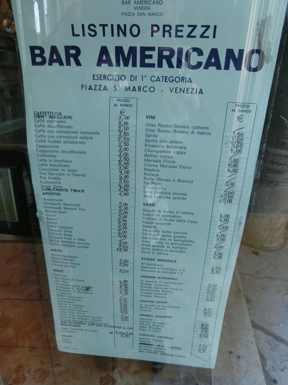 サンマルコ寺院に入った友人を待っている間、すぐ横にある、バールに入る。