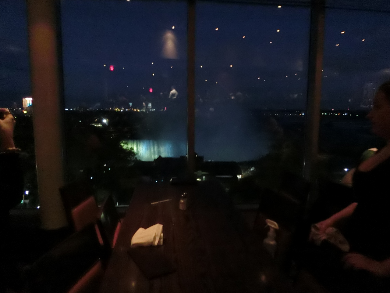 食事しながらカナダ滝の夜景が見える。