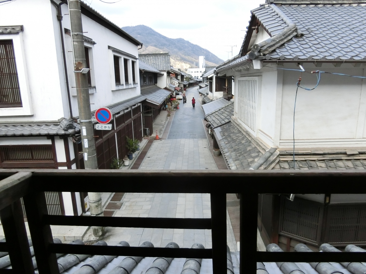 旧笠井邸の2階から古い街並みを見る。丁度正面に見える。
