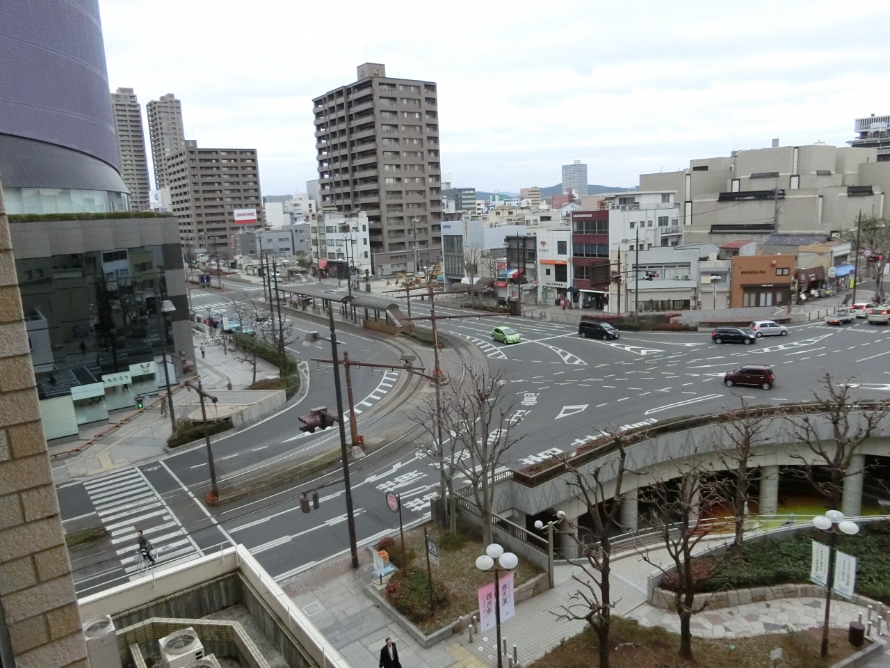 今回は、岡山駅から歩いて2-3分の岡山駅前から、ホテルコンフォートのある城下まで乗った。