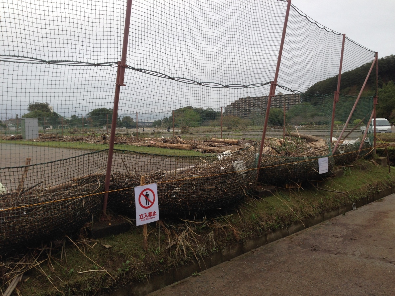 飯能市のテニスコートには流木が入ってコートの整備が大変です!