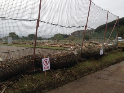 阿須テニスコートの流れ込んだ流木の山です!