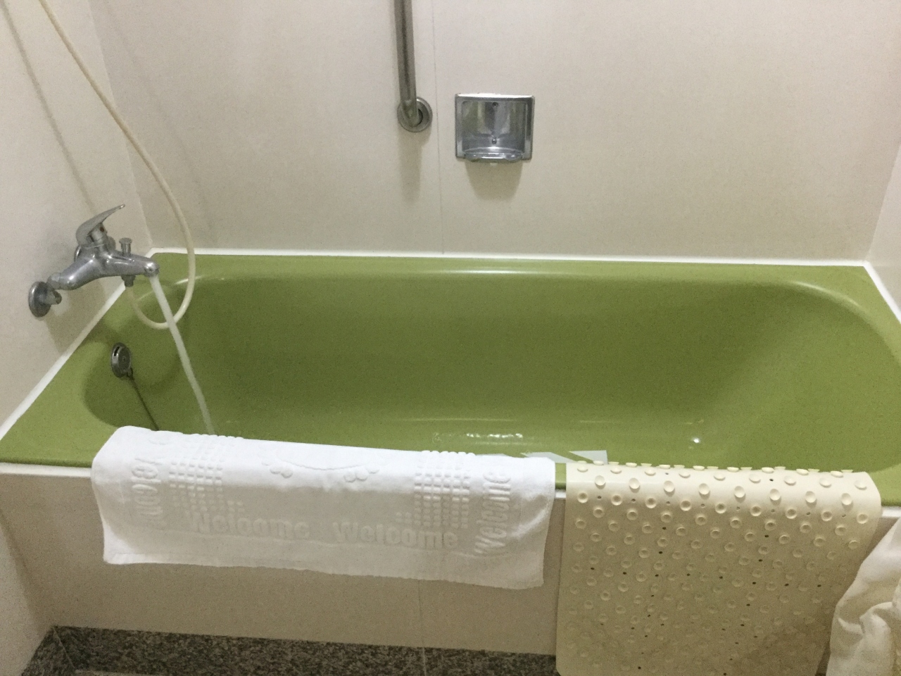 ホテルにはペットボトル、歯ブラシ、スリッパ、冷蔵庫、ポットがあった。