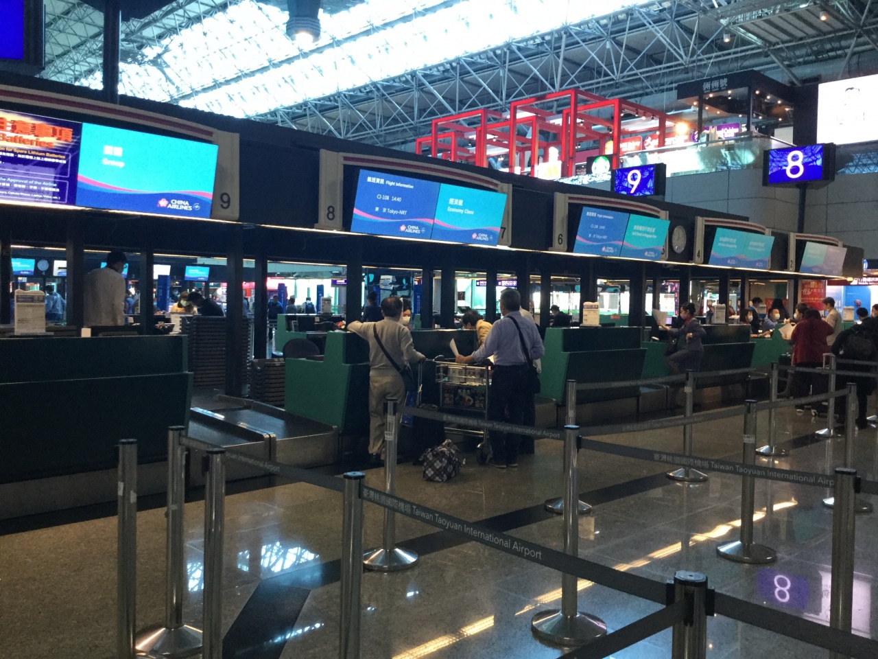 台湾桃園国際空港のチャイナエアラインでチェックイン。