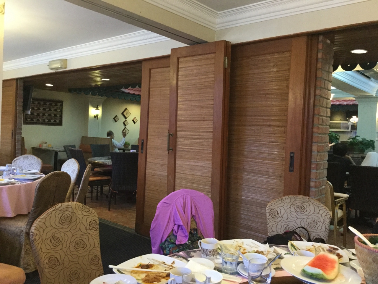 ザ エンパイア ブルネイは広いのでバギーを呼んで朝食食堂の本館 アトリウムビルに行きます。