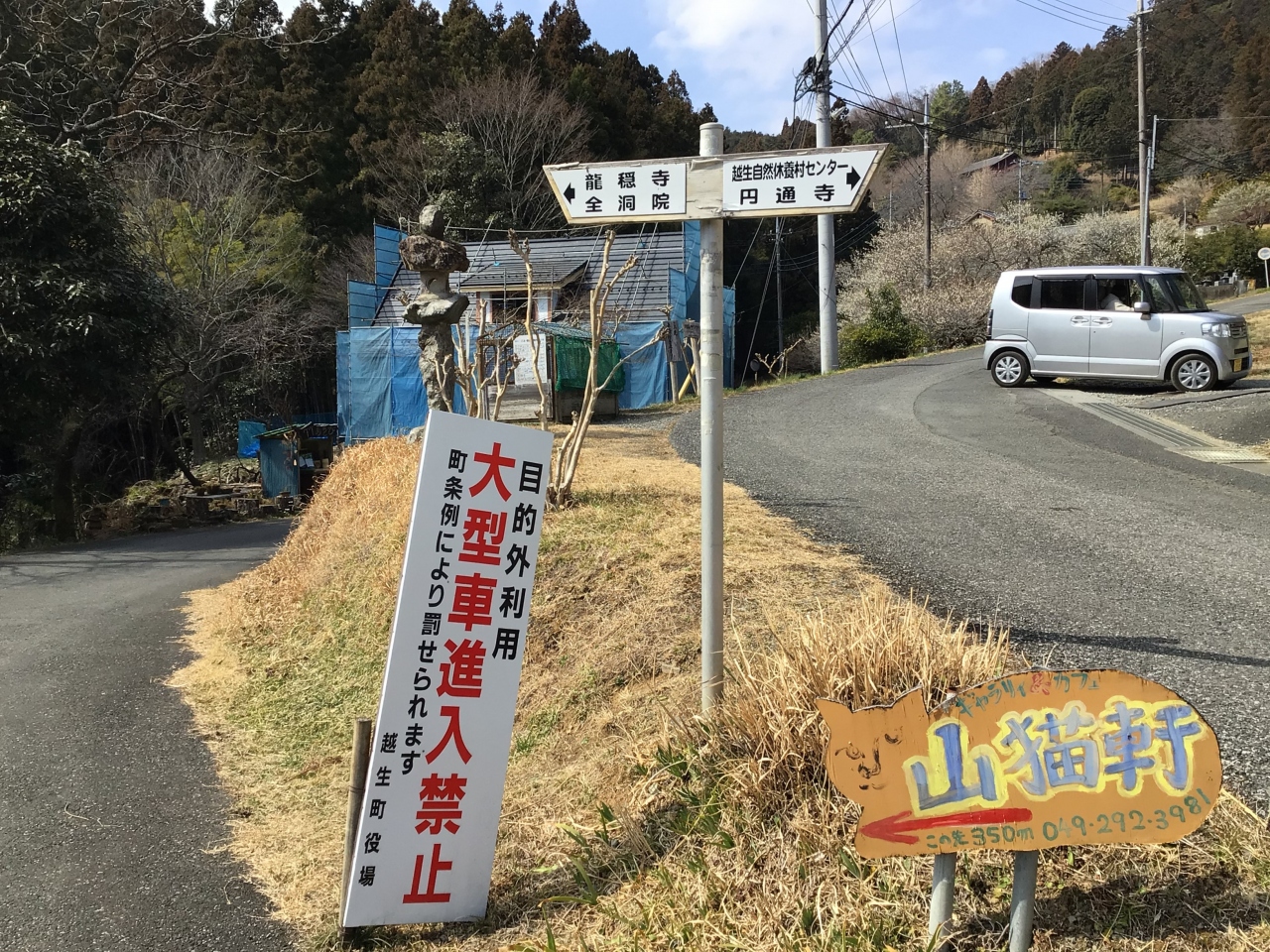 越生梅林を見た後山道を走り、道路標識があってホッとした。