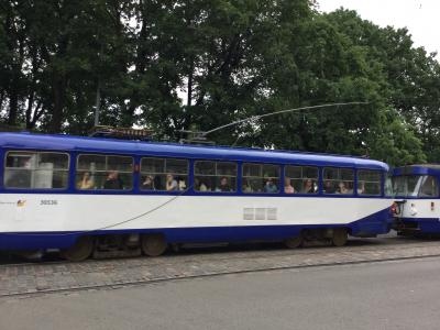 トラムが走る旧市街の境界線を越えてピルセータス運河が流れる