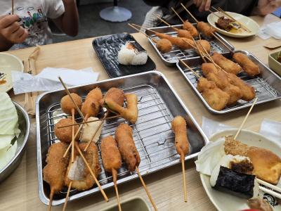 そこで先に夕食をということになり、「二度づけ禁止」が謳い文句の串カツを食べることにしました。