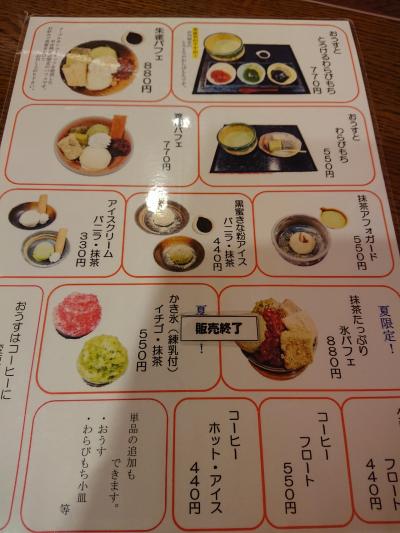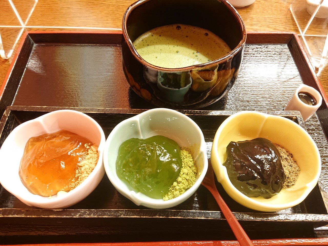 抹茶ソフトとわらび餅とおうすのセットをいただきました。