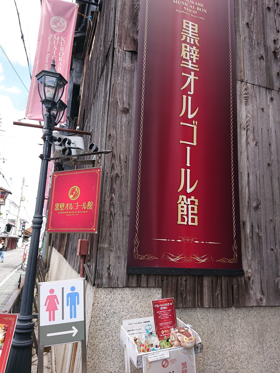 長浜駅から湖の反対方向の出口からまっすぐ行くと、滋賀銀行が右にある信号を左に曲がってまっすぐ行くと黒壁が見えてきます。