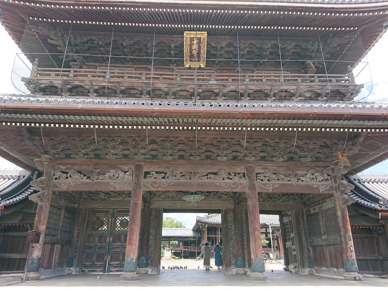 長浜の黒壁スクエアから商店街を歩いて行くと大きな立派なお寺の門が見えました。
