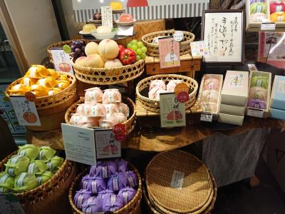 フレッシュフルーツありますの看板にそそられて入ると和菓子、ゼリーなどおいてあるお店でした。