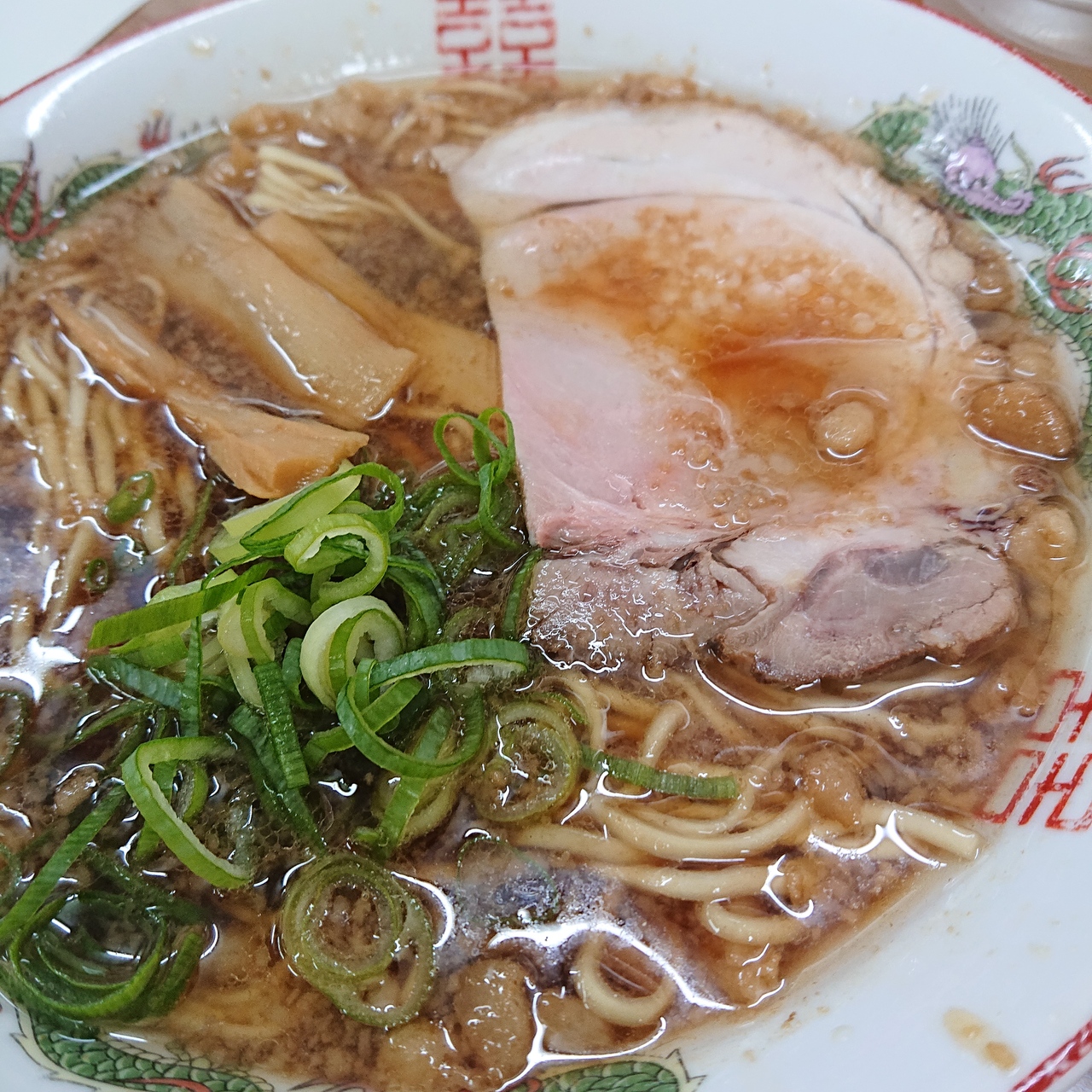 くじからラーメンを注文しました。太麺で醤油味の、黒いから味が濃いかと思いきや、あっさりでした。- 旅行時期