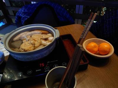 7時から一時間のお席で、おでん、うどん、みかん、飲み放題がついていて4000円税込み