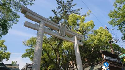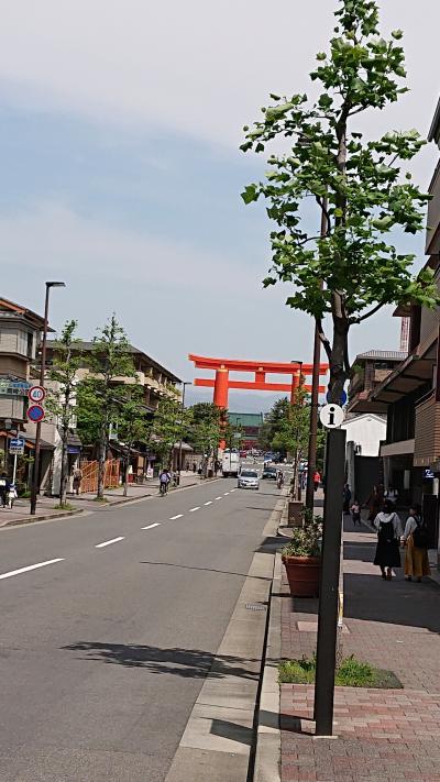 大きな鳥居が見えるので、市立美術館、府立美術館をはさんだ道を通り、