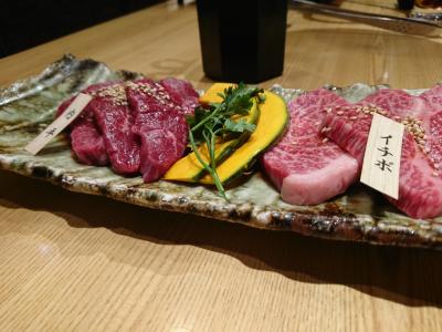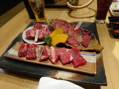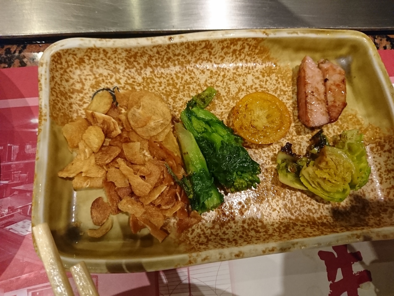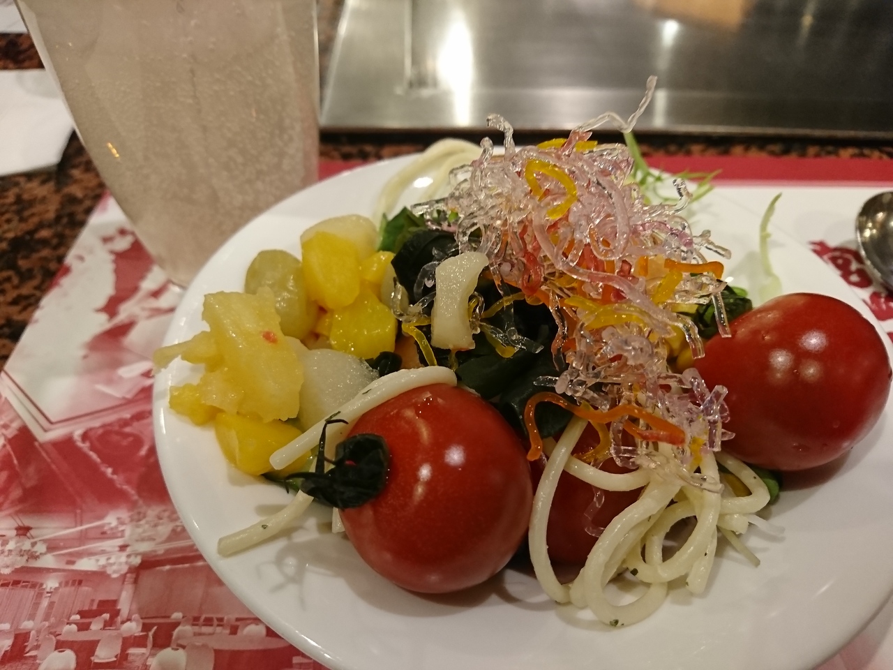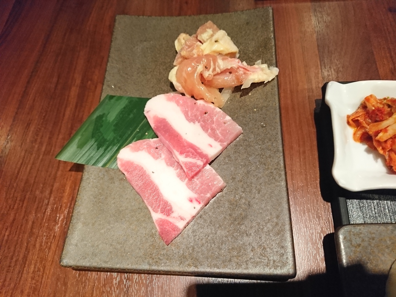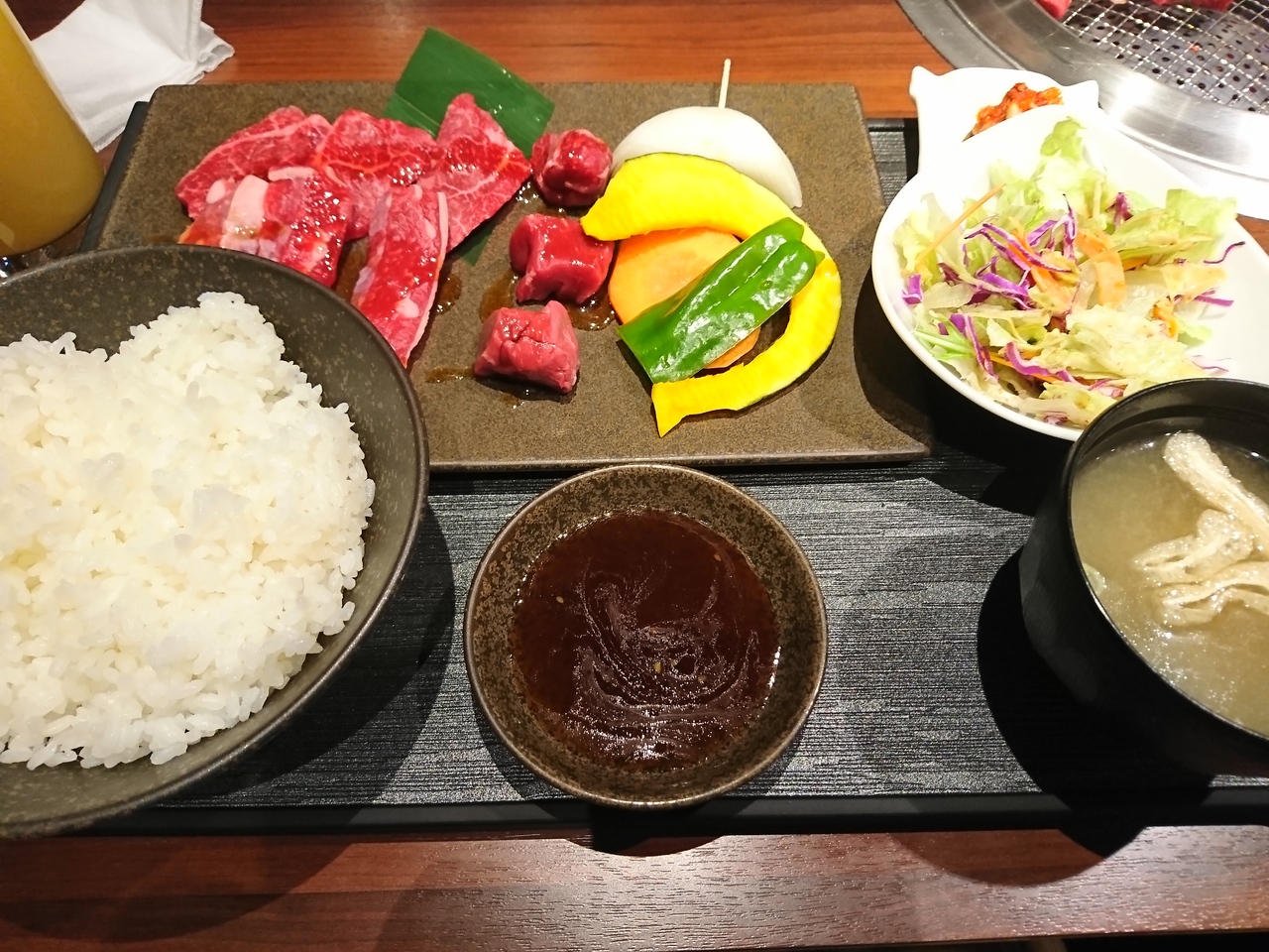 赤身肉と豚肉と鶏肉、味噌汁、キムチ、白ご飯、野菜サラダ、ワンドリンクついているセットにしました。
